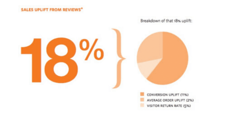 Testimonials are impactful but straightforward features to show your trustworthiness. Their effect on consumers is well documented. Multiple studies have found that customer reviews lead to higher conversion rates. As the above chart shows, too, the impact of reviews also extends to overall sales.