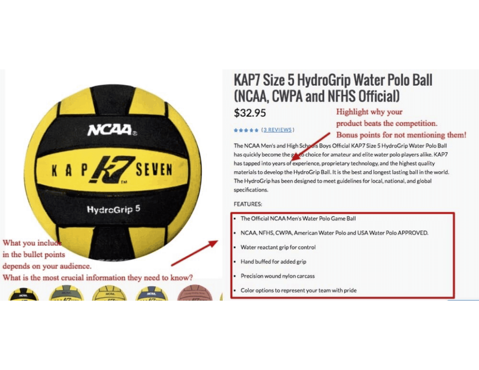 Once you understand those details, draft a paragraph or two about the product. You want this part to be a little bit creative and to showcase your brand voice. Below the paragraph, include short, scannable bullet points for specific product specs/features and other concrete, factual information or relevant technical information.