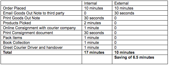 Once we identified a partner, we carried out a review what changing to an outsourced warehouse would mean. This was a final check to confirm we were making the right decision and to clarify the impact on the business. First we looked at the time saving: