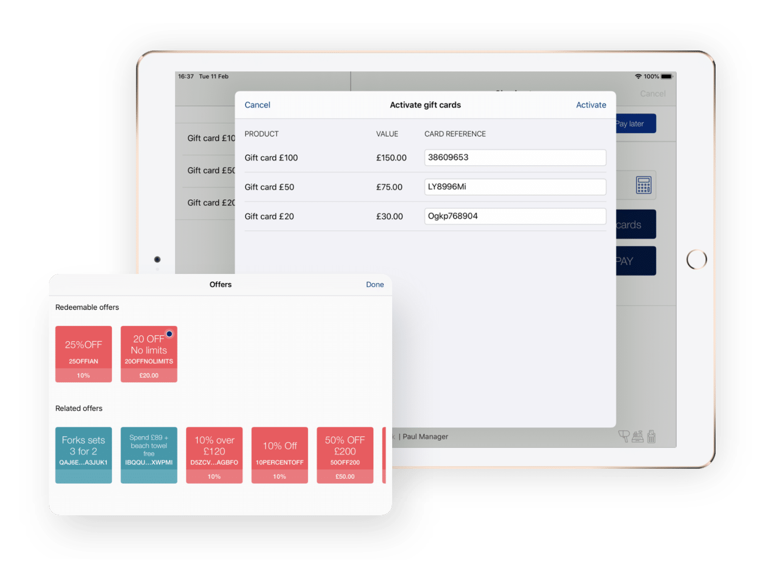 When choosing a POS System, ensure that it has customer-focused features. Gift cards and loyalty programs are great for improving customer satisfaction, so you should opt for a system that can deliver this. This is an example of Brightpearl’s POS system interface, showcasing offers and promotions that are available at a store.