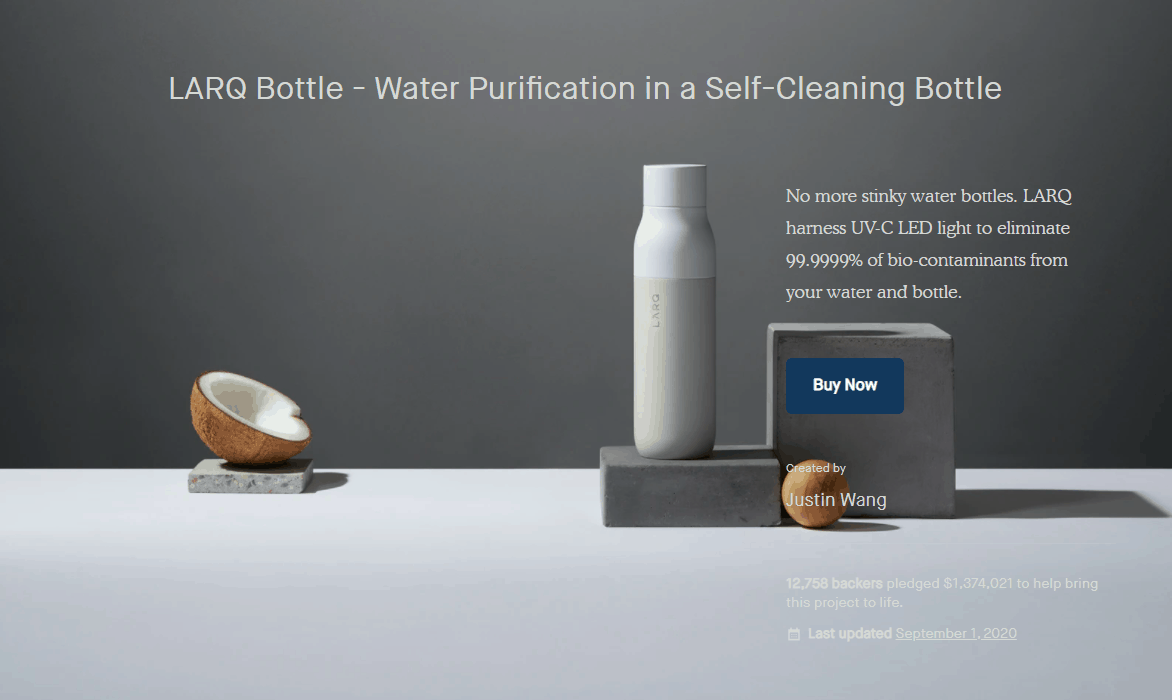 Here’s an example. Back in 2018, Larq launched its innovative self-cleaning water bottle. The business drummed up interest in its product via several crowdfunding sites and a social media campaign. Eventually, Larq raised a record-breaking $1.7 million, which made production possible.