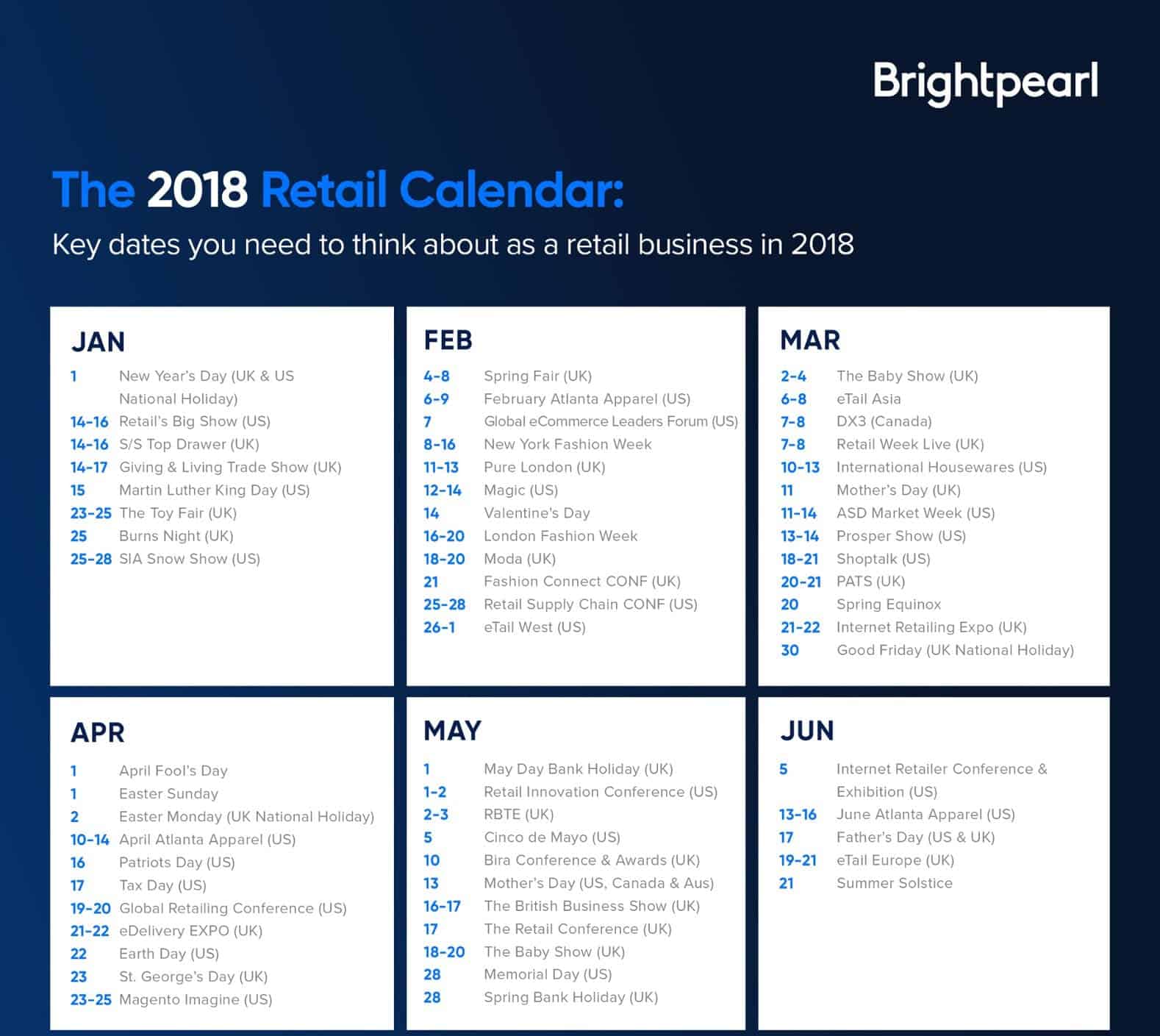From key shopping dates, to popular trade shows and events, this calendar has all of the key dates you need to know for the year ahead.