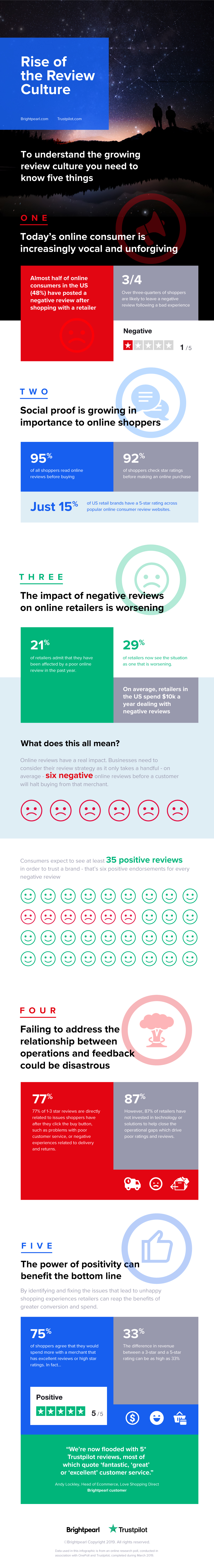 How important are online ratings and reviews to you? The Rise of the Review Culture, a new study by Brightpearl and Trustpilot, explores why the burgeoning review culture is having a growing financial and reputational impact on retailers and brands as today’s online consumer becomes more vocal and unforgiving - but also much more reliant on ratings and reviews, to support their decision making.