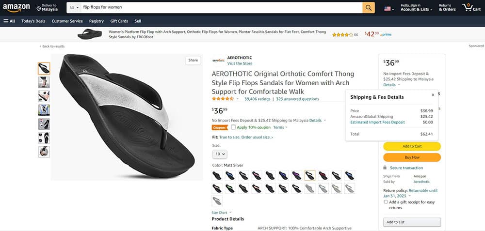 Amazon clearly states the fees so customers can make informed purchase decisions. (Source: amazon.com)