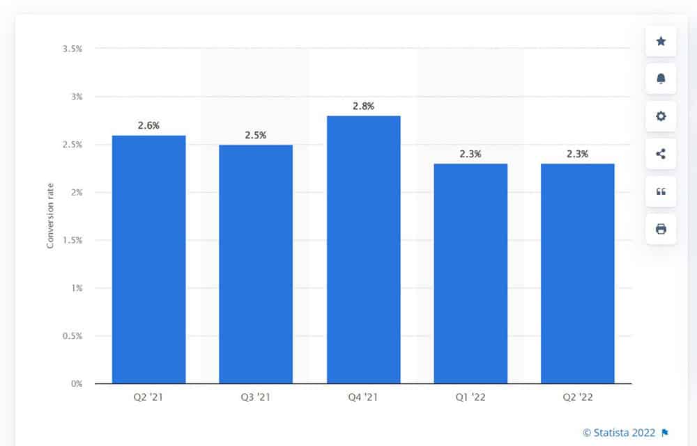Online shopper conversion rate in the US 2021-2022 (Source: Statista)